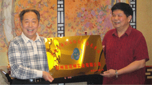 時任河南省人民政府省長郭庚茂先生(左)與臺州商會支部書記、《百花散》傳人梅安富先生合影